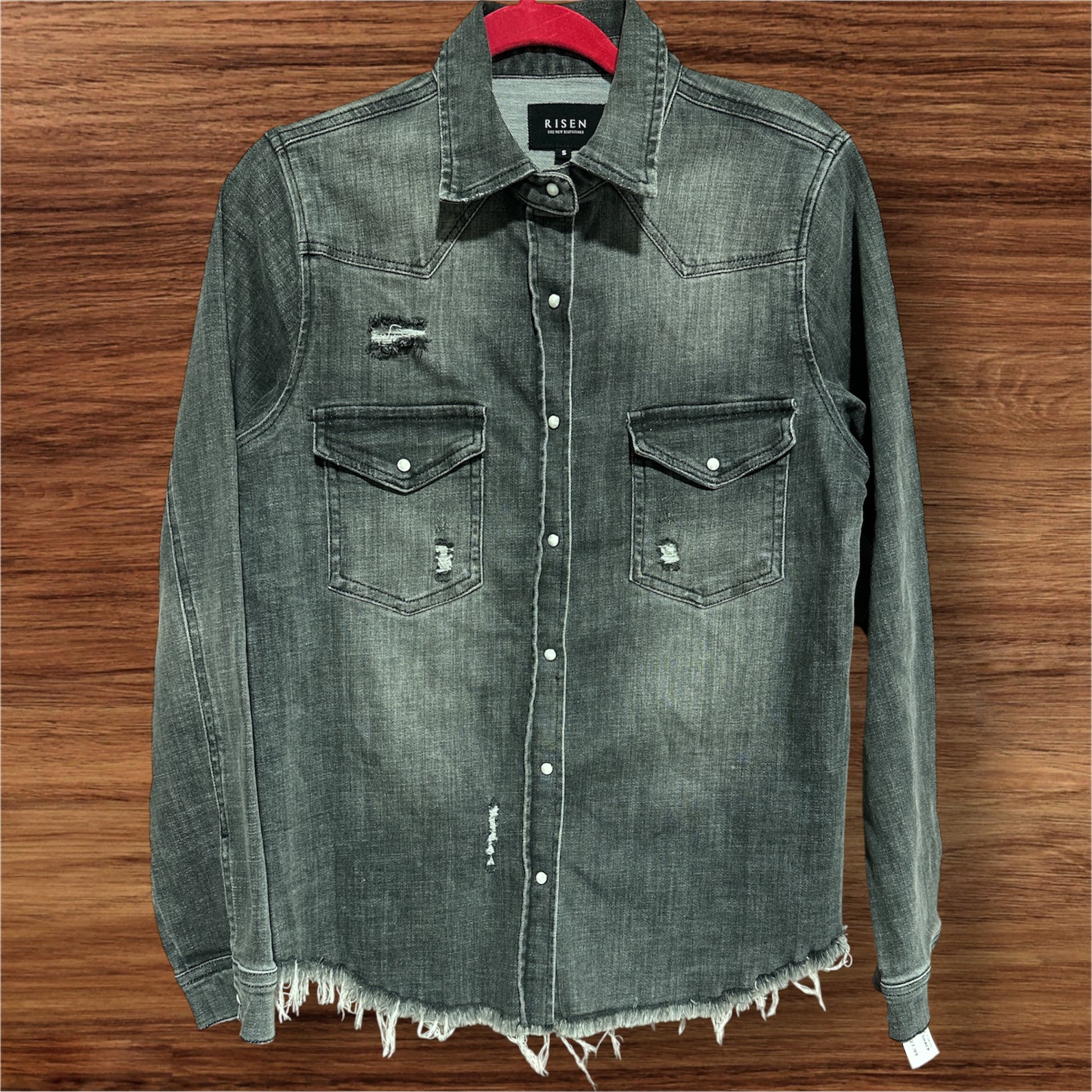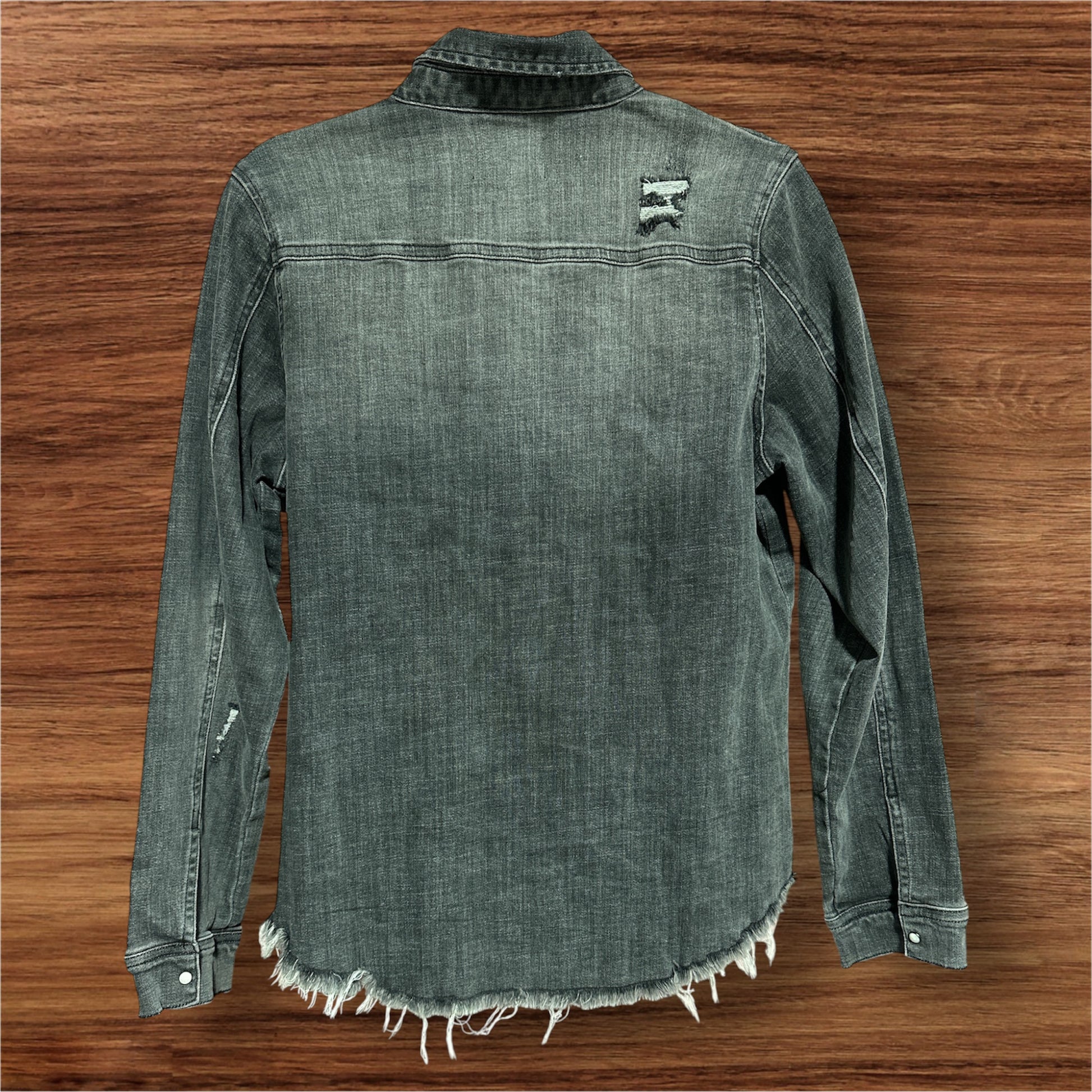 GRAY RISEN DISTRESSED SHACKET, SMALL